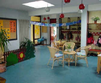 Die Einrichtung umfasst 5 Gruppenräume und einen Mehrzweckraum für Bewegungserziehung, Gymnastik und Rhythmik. Die Einrichtung verfügt zudem über ein Leiterinnenbüro, einen Personalraum, einen Intensivraum und eine großzügige Außenanlage.
